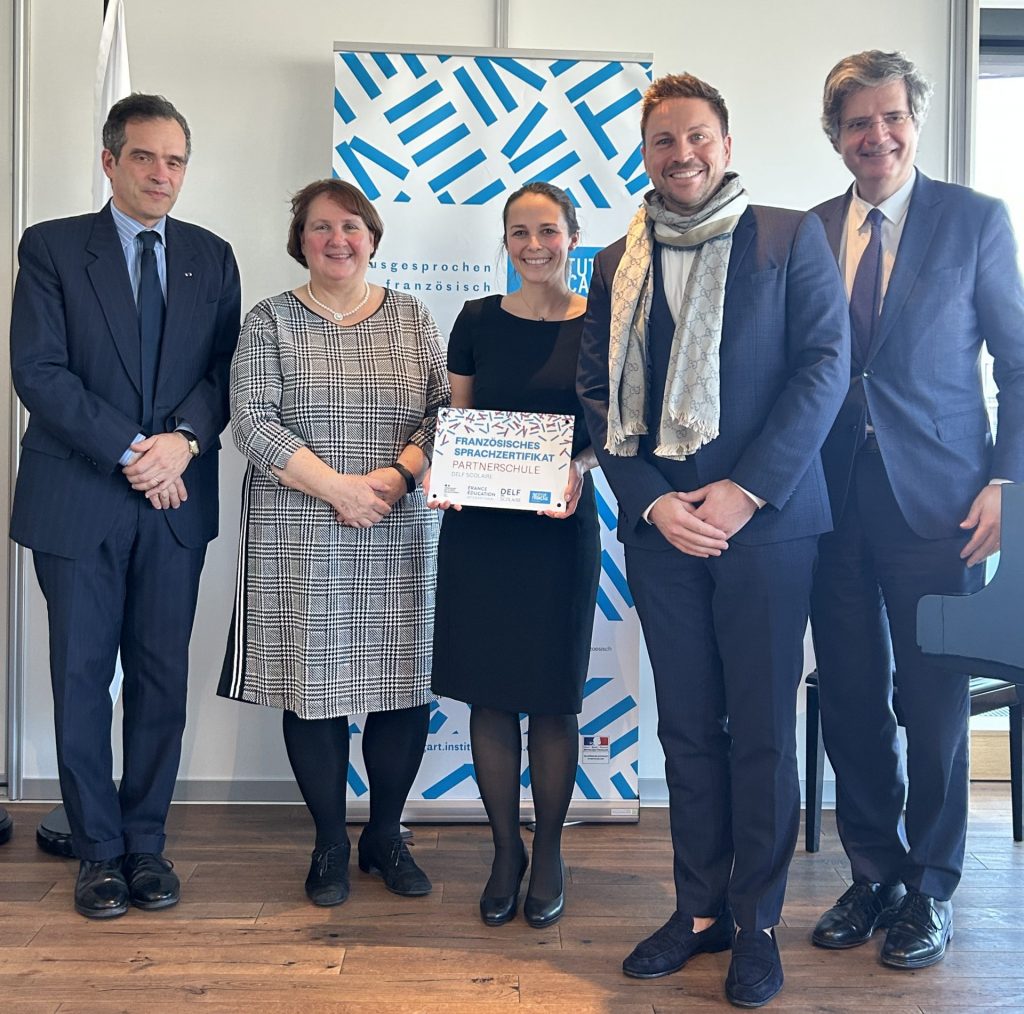Alle Schulen, welche seit dem Schuljahr 2018-2019 an dem Pilotprojekt „DELF scolaire intégré“ teilnehmen, erhielten diese Auszeichnung.