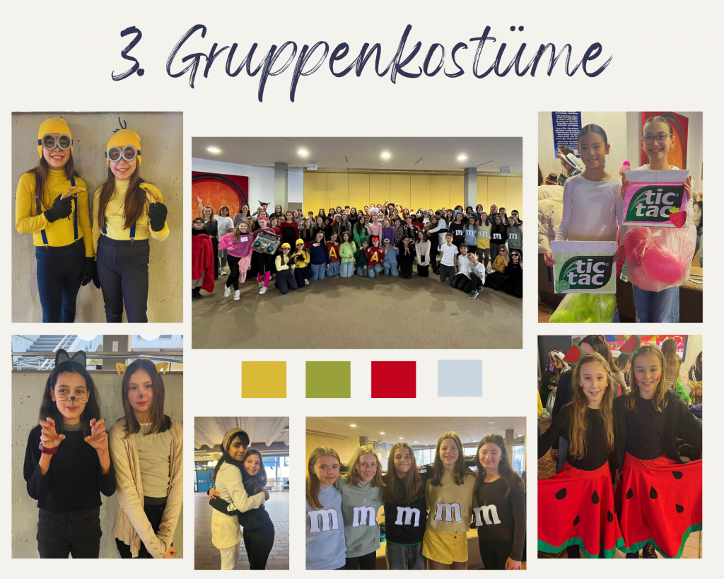 Am Mittwoch taten sich viele Schüler*innen und Lehrkräfte zusammen und bildeten Gruppenkostüme. Neben bunten M&Ms, einer Touristengruppe, Tic Tacs und Obstschalen konnte sich die Mario-Kart-Gruppe besonders behaupten. Der Pilz hatte sogar einen selbstgestrickten Pilzkopf – das nennen wir Initiative und Engagement!