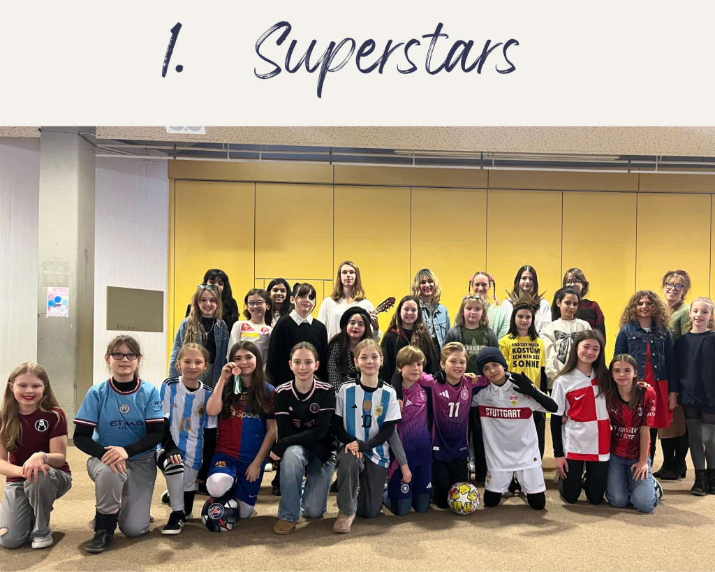 Die Woche begann mit dem Motto „Superstars“. Hier begegnete man auf den Fluren zahlreichen Taylor Swifts und vielen Fußballfans, die stolz Trikots von Vereinen aus aller Welt trugen.