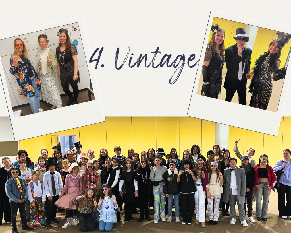 Mit dem Thema „Vintage“ stand am Donnerstag das letzte Jahrhundert im Mittelpunkt. Die Schulgemeinschaft kleidete sich im Stil der 1920er bis 1990er – mit hippen Schlaghosen und verrückten Perücken.