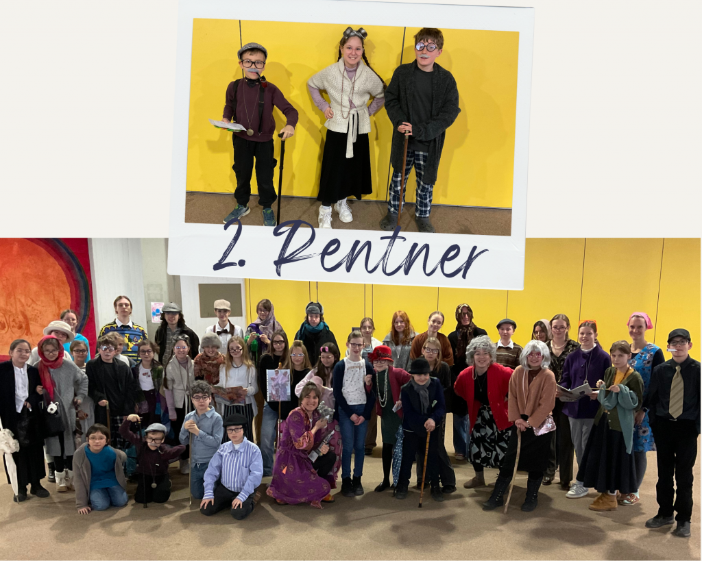 Bei der Mottowoche gibt es für jeden Tag eine bestimmte Kleiderordnung, die zu einem vorgegebenen Thema passt. In jeder großen Pause wurde in der Aula das beste Kostüm gekürt und mit süßen Preisen belohnt. Die Jury, die fairerweise aus Lehrkräften und Schüler*innen bestand, war täglich sehr kritisch. Frau Barth und Frau Steppe, die sich seit Jahren mit viel Begeisterung verkleiden, zeigten auch als Jury-Mitglieder, wie der Hase läuft.