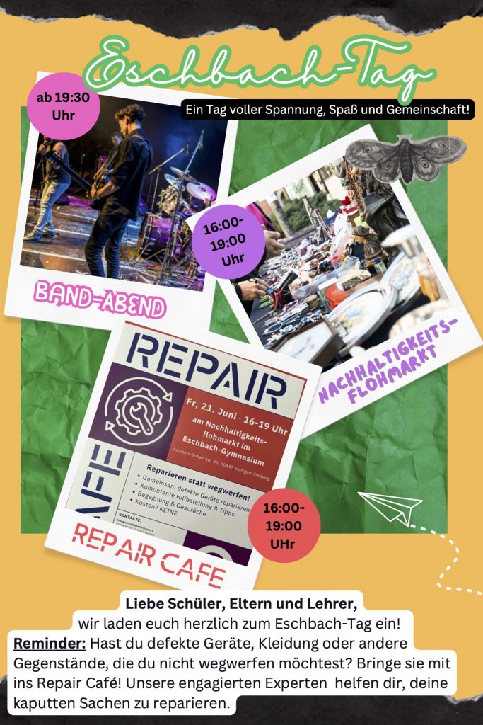 wir laden euch herzlich zum Eschbach-Tag am Freitag, dem 21.06.2024 ein! Freut euch auf einen aufregenden Tag voller abwechslungsreicher Events und gemeinschaftlicher Aktivitäten.