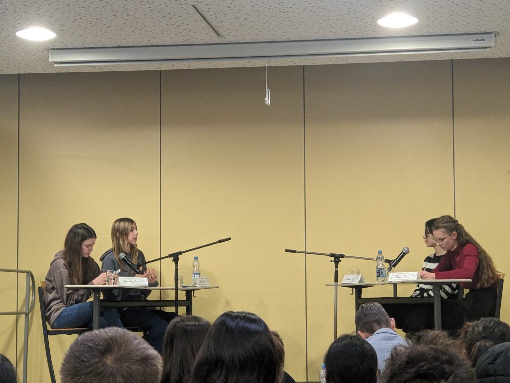 Annika (9a), Juliane (9a), Elen (9b) und Kalliopi (9c) duften ihre Kompetenzen in einer Debatte zur Frage „Soll ein Schulfach „Praktische Lebensführung“ eingeführt werden?“ unter Beweis stellen. In der Altersklasse II durften Jannika (10b), Deniz (10c), Ahmed (10c) und Timo (10b) über die Frage „Soll in Deutschland eine soziale Pflichtzeit eingeführt werden?“ debattieren.