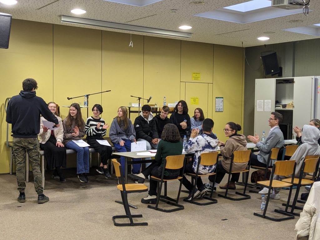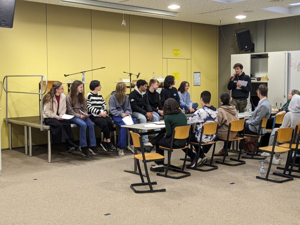 Am 23.01.23 war es dann endlich soweit: Im Schulwettbewerb, dem Finale an unserer Schule, traten die besten Debattantinnen und Debattanten der Altersklasse I, also aus den neunten Klassen, und Altersklasse II, also aus den zehnten Klassen, gegeneinander an.