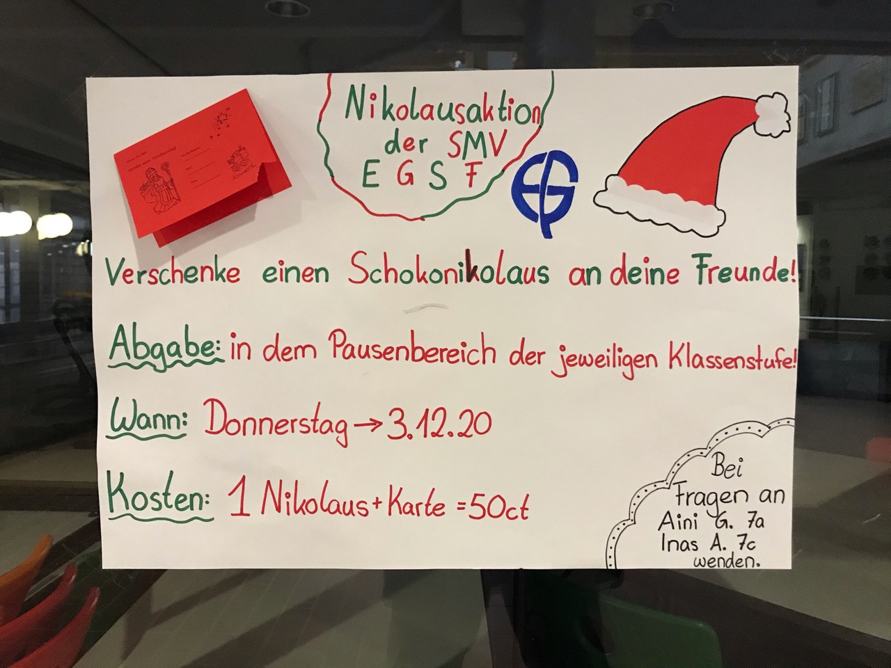 Die SMV hat in diesem Schuljahr eine tolle Nikolausaktion organisiert. Unsere Schülerinnen und Schüler hatten so, trotz Corona, sowohl klassenintern als auch klassenübergreifend, die Möglichkeit, sich gegenseitig eine Freude zu machen.