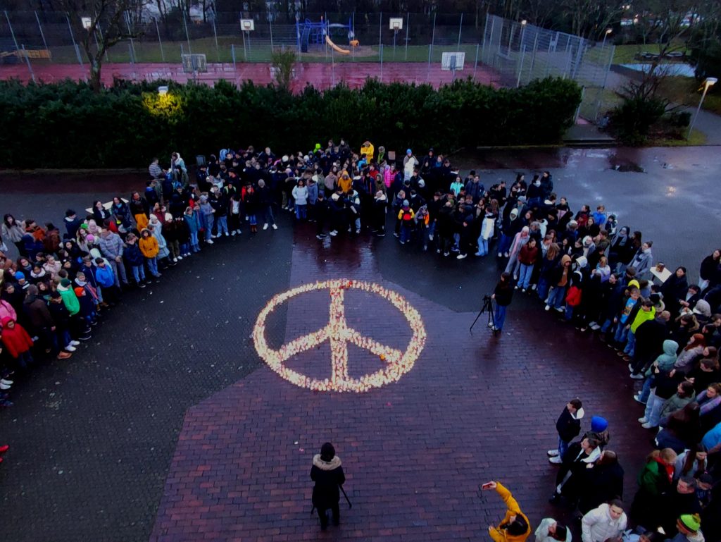 Bereits im letzten Jahr haben das Eschbach-Gymnasium und die Kreuzstein-Schule erfolgreich zum Thema Frieden kooperiert. Damals fand eine stimmungsvolle Lichtaktion statt, die ein starkes Zeichen für den Frieden setzte. In diesem Jahr setzten wir unsere Zusammenarbeit fort und führten erneut eine besondere Aktion zum Weltfriedenstag am 21. September 2024 durch.