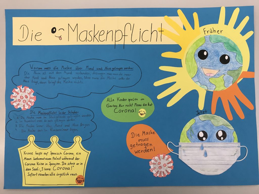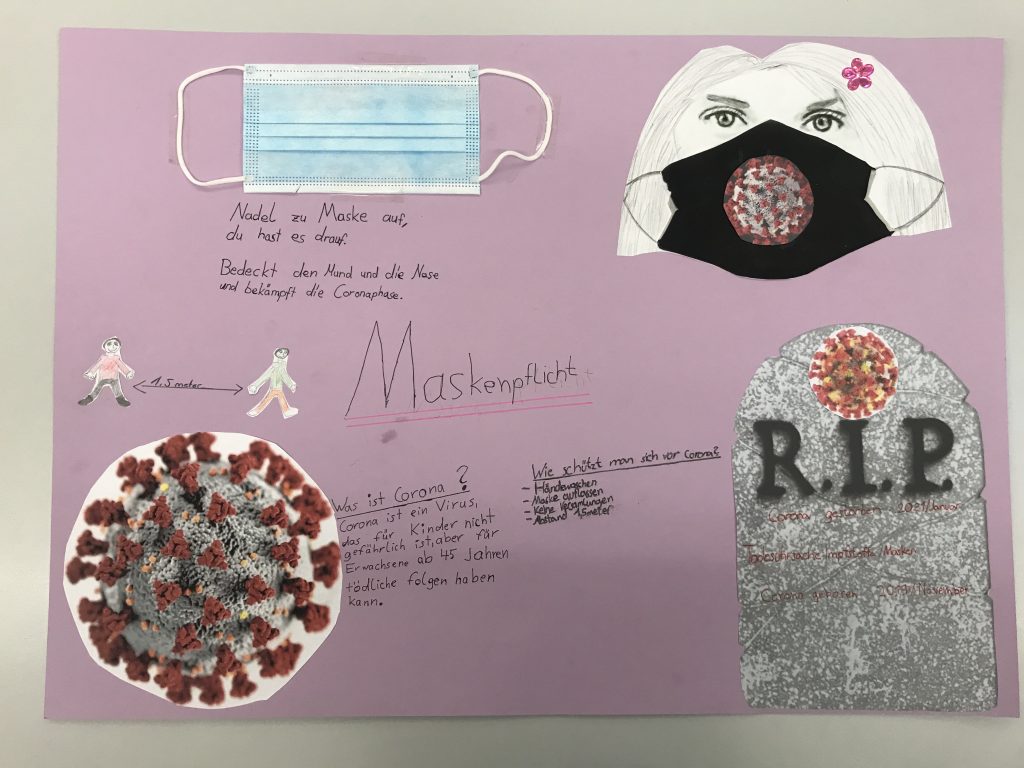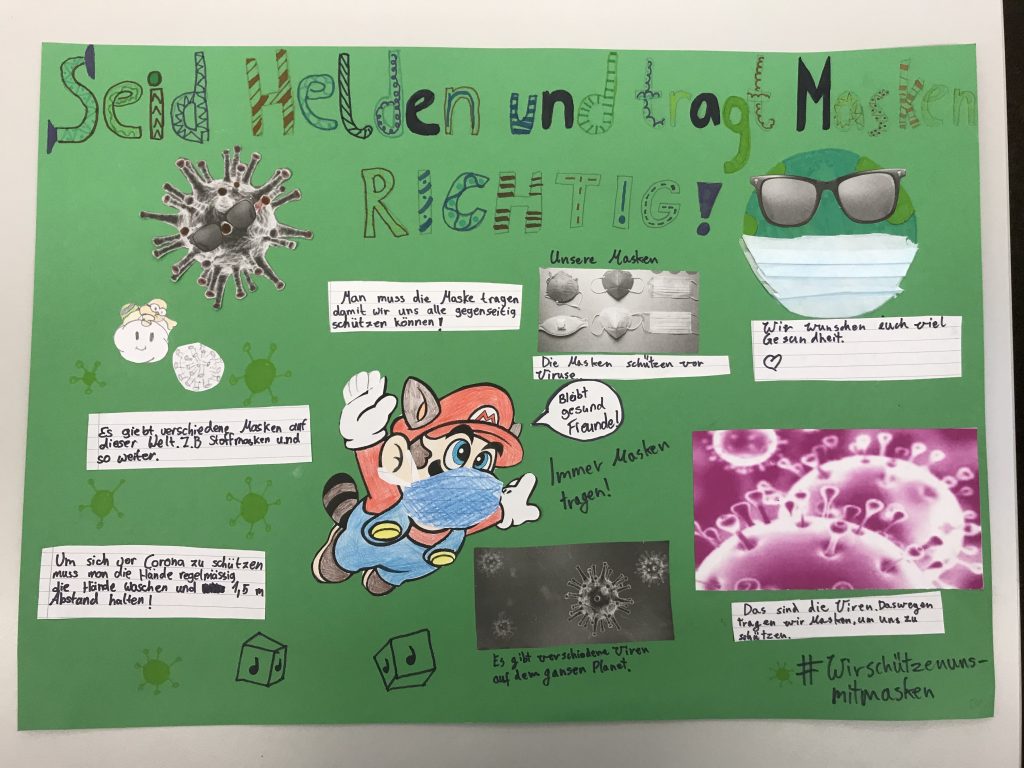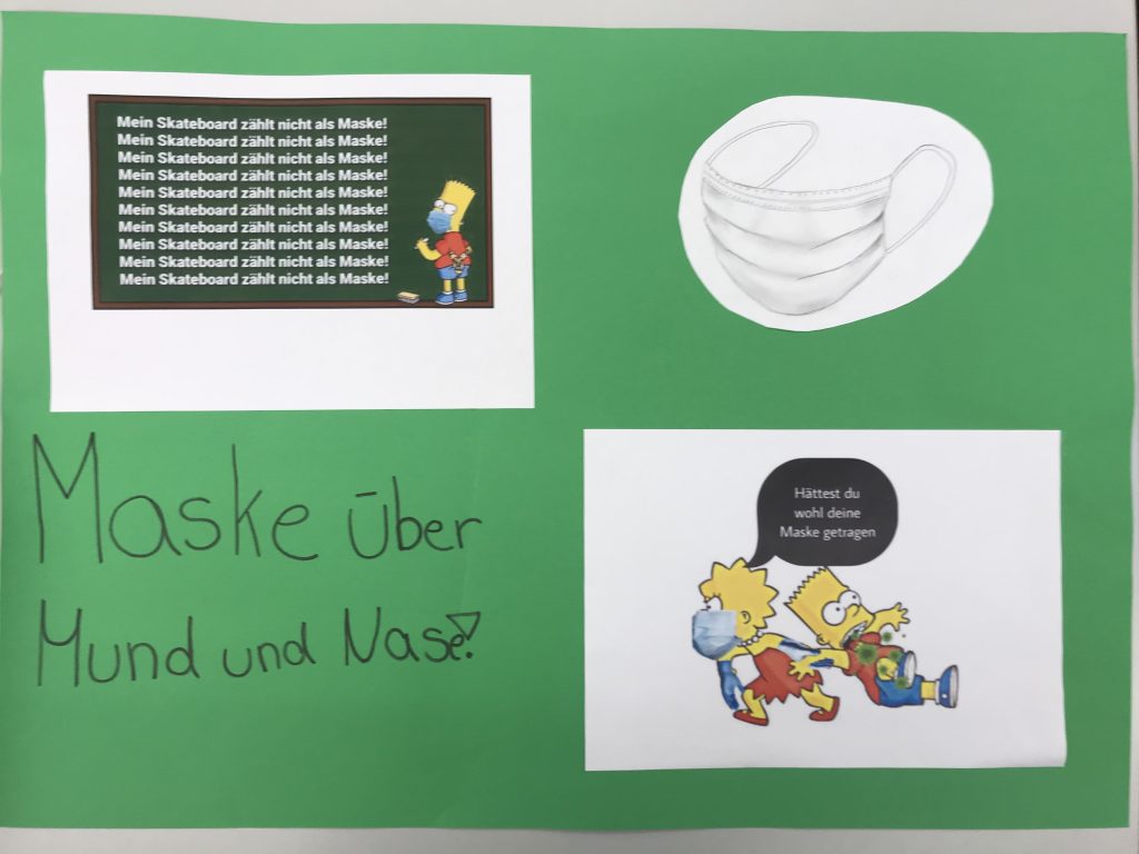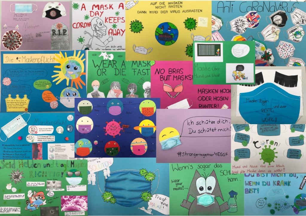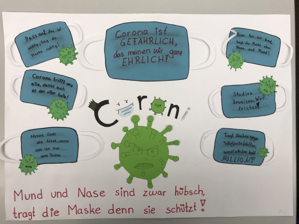 Die Pandemie hat auch uns als SMV total überrascht und unsere Arbeit verändert. Viele geliebte Aktionen mussten entfallen, welche die Schulgemeinschaft stärken sollten. Um aber nicht untätig zu bleiben, beschloss die SMV einen schulweiten Wettbewerb in Form einer Plakataktion zum Thema „Maskentragen“ durchzuführen. Anbei sind die Plakate dargestellt, wie sie lange Zeit in unserem Schulhaus zu sehen waren.